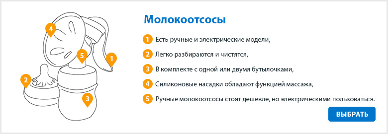 В первую очередь стоит приобрести молокоотсос. Ручной или автоматический – решать вам, отзывы покупательниц говорят о том, что и один и второй вариант очень эффективны.
